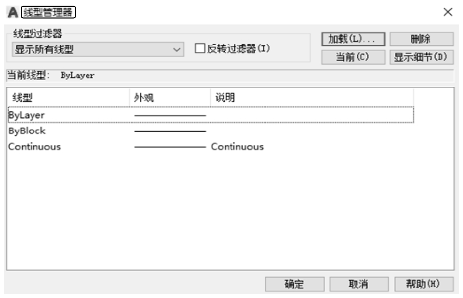 执行上述命令后,系统弹出“线型管理器”对话框,如图2-35所示。