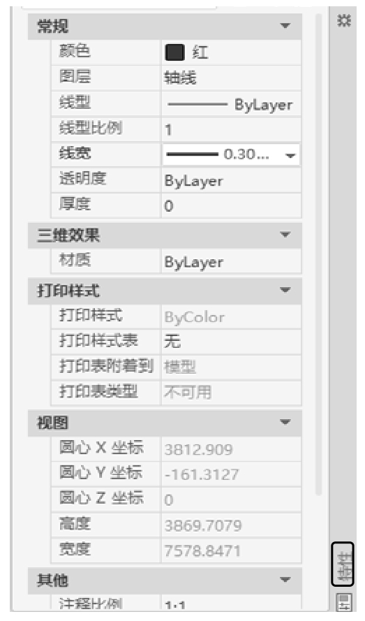 执行上述命令后,系统弹出“特性”选项板,如图2-40所示。在其中可以方便地设置或修改图层、颜色、线型、线宽等属性。