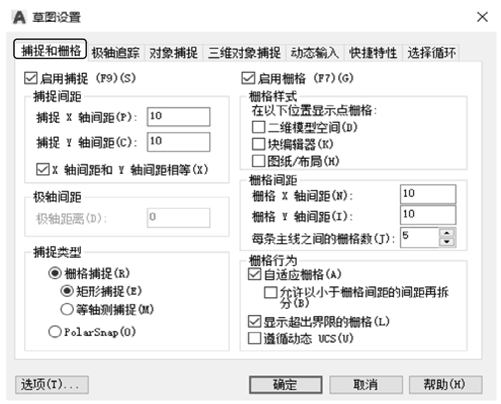 图2-42 “捕捉与栅格”选项卡