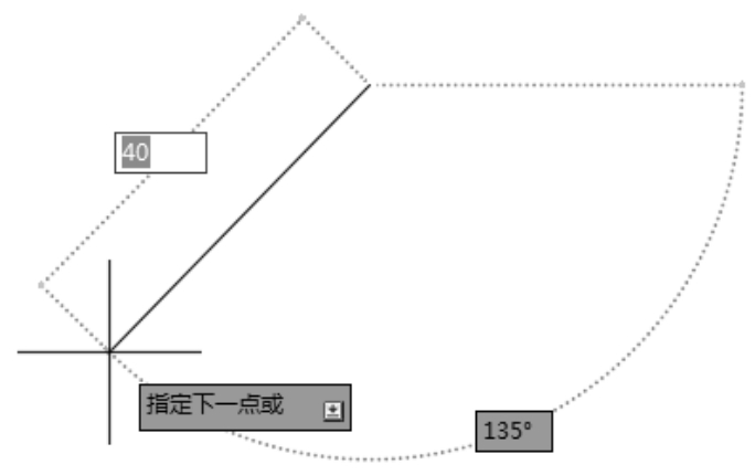 极坐标的输入方式为“长度<角度”(其中,长度为点到坐标原点的距离,角度为原点至该点连线与X轴的正向夹角,如“20<42”)或“@长度<角度”(相对于上一点的相对极坐标,如“@20<-30”)。