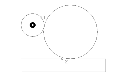 ,采用“相切,相切,半径”方式,绘制与图3-43中点1、点2相切,半径为70的大圆。