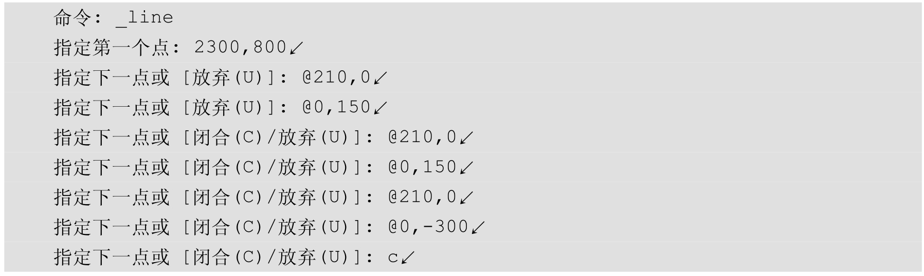 ,绘制端点坐标为(420,122),(@68<90),(@23<180)的折线。结果如图3-42所示。