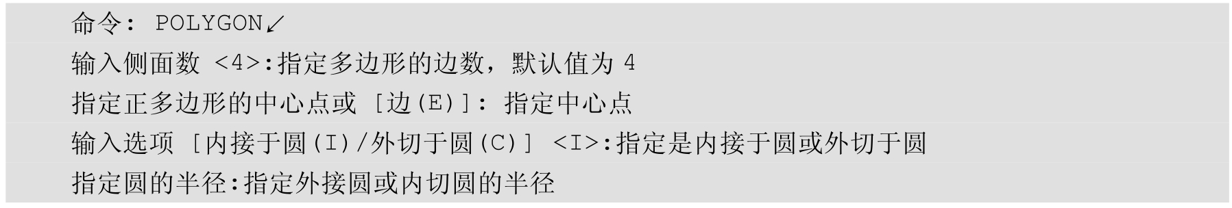 功能区:单击“默认”选项卡“绘图”面板中的“多边形”按钮