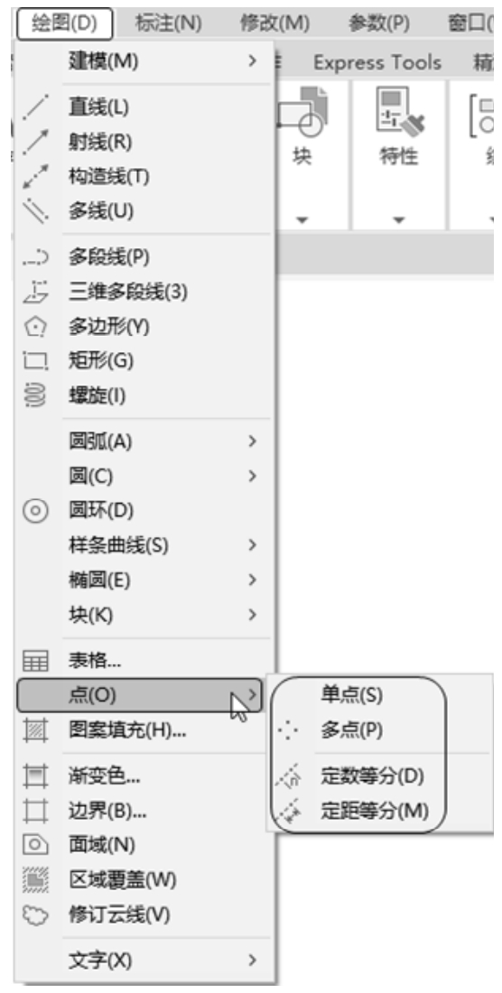 菜单栏:选择菜单栏中的“绘图”→“单点”或“多点”命令。
