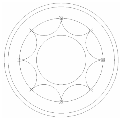 (2)利用“定数等分”命令把次内层圆等分为8等分。