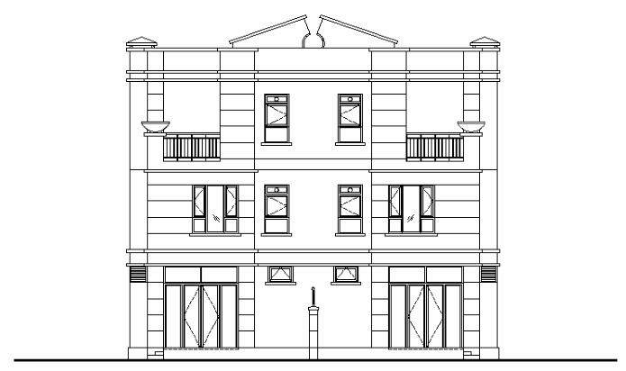 (2)建筑立面图(简称立面图):主要用来表达建筑物各个立面的形状和外墙面的装修等,是按照一定比例绘制建筑物的正面、背面和侧面的形状图,它表示的是建筑物的外部形式,说明建筑物长、宽、高的尺寸,表现楼地面标高、屋顶的形式、阳台位置和形式、门窗洞口的位置和形式、外墙装饰的设计形式、材料及施工方法等,如图1-7所示为某建筑的立面图。
