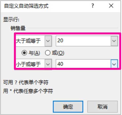案例1: 如图1-42所示,筛选销售量在20~40的订单。