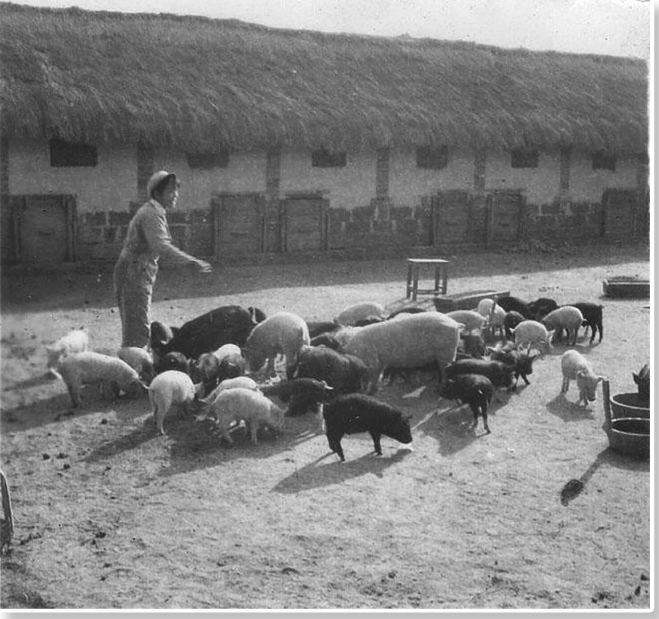在一块荒地上,大家自己动手盖了一排猪圈,围了一个院子,养了一头大公猪、几十头母猪,繁殖小猪供各连去养。二连的一个排负责管理猪圈,我便被分配到这个排当了3年“猪倌”。
