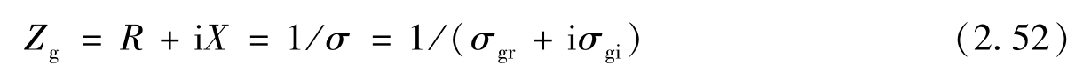 式中: R 为表面阻抗实部,对应石墨烯的吸收损耗; X 为表面阻抗虚部,对应石墨烯呈容性还是呈感性。显然 R 和 X 的绝对大小由电导实部( σ gr )和虚部( σ gi )共同决定,而石墨烯呈容性还是呈感性,则取决于表面电导率实部 σ gr 。