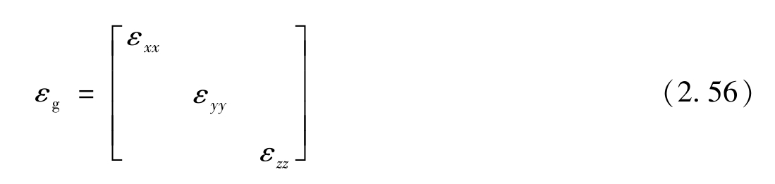 所以石墨烯的等效介电常数实部受电导率虚部影响,而虚部则受电导率实部影响。需要强调的是,当石墨烯建模成一层有厚度(定义石墨烯厚度为 t )的薄层材料时,不能简单地将其定义为各向同性介质。假设石墨烯垂直方向为 z 轴,则其相对介电常数可以用对角张量来表示