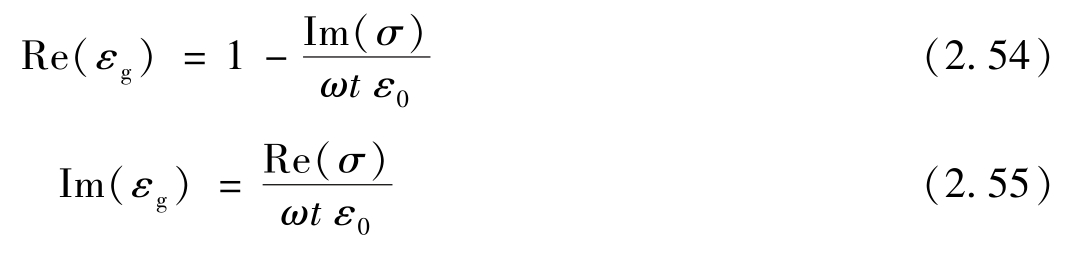 考虑外加电场 E 的作用,可以得到石墨烯的传导电流 J=σ v E=σ/t E ,其中 σ v =σ/t 表示石墨烯的体电导率, t 为石墨烯厚度,而其物理厚度为一个碳原子直径大小,远远小于其工作波长,给数值仿真带来了很大挑战,所以往往在不影响宏观电磁现象精确度的前提下,可取其等效的厚度。将传导电流 J 代入麦克斯韦方程:∇ ×H = J -i ωε 0 E=- i ωε g E 便可以提取石墨烯等效介电常数