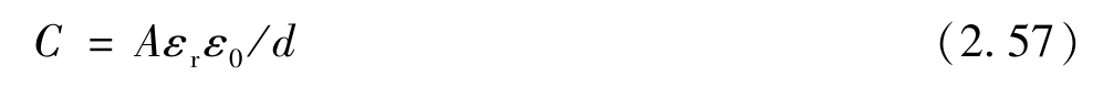 式中: C 表示平行板电容器的容量; ε r 表示中间介质层的相对介电常数; ε 0 表示真空中介电常数; d 表示石墨稀和金属电极之间的厚度; A 表示平行板电容器结构的面积。