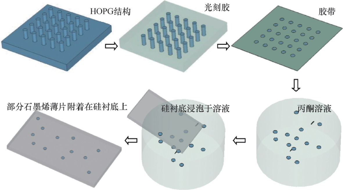 (1)用氧等离子体在HOPG表面进行刻蚀大约5μm深度,留下微柱,柱宽度从20μm到2mm大小不等;
