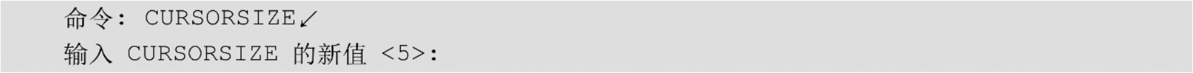 此外,还可以通过设置系统变量CURSORSIZE的值,修改其大小,其方法是在命令行中输入如下命令。