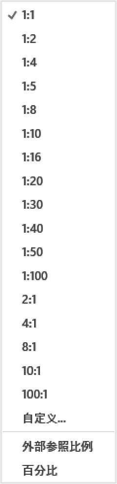 (21)注释比例:单击注释比例右下角小三角符号打开注释比例列表,如图2-15所示,可以根据需要选择适当的注释比例。