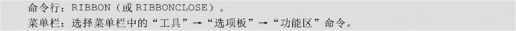 包括“默认”“插入”“注释”“参数化”“视图”“管理”“输出”“附加模块”“协作”“Express Tools”和“精选应用”等几个选项卡,在功能区中集成了相关的操作工具,方便用户使用。用户可以单击功能区选项板后面的