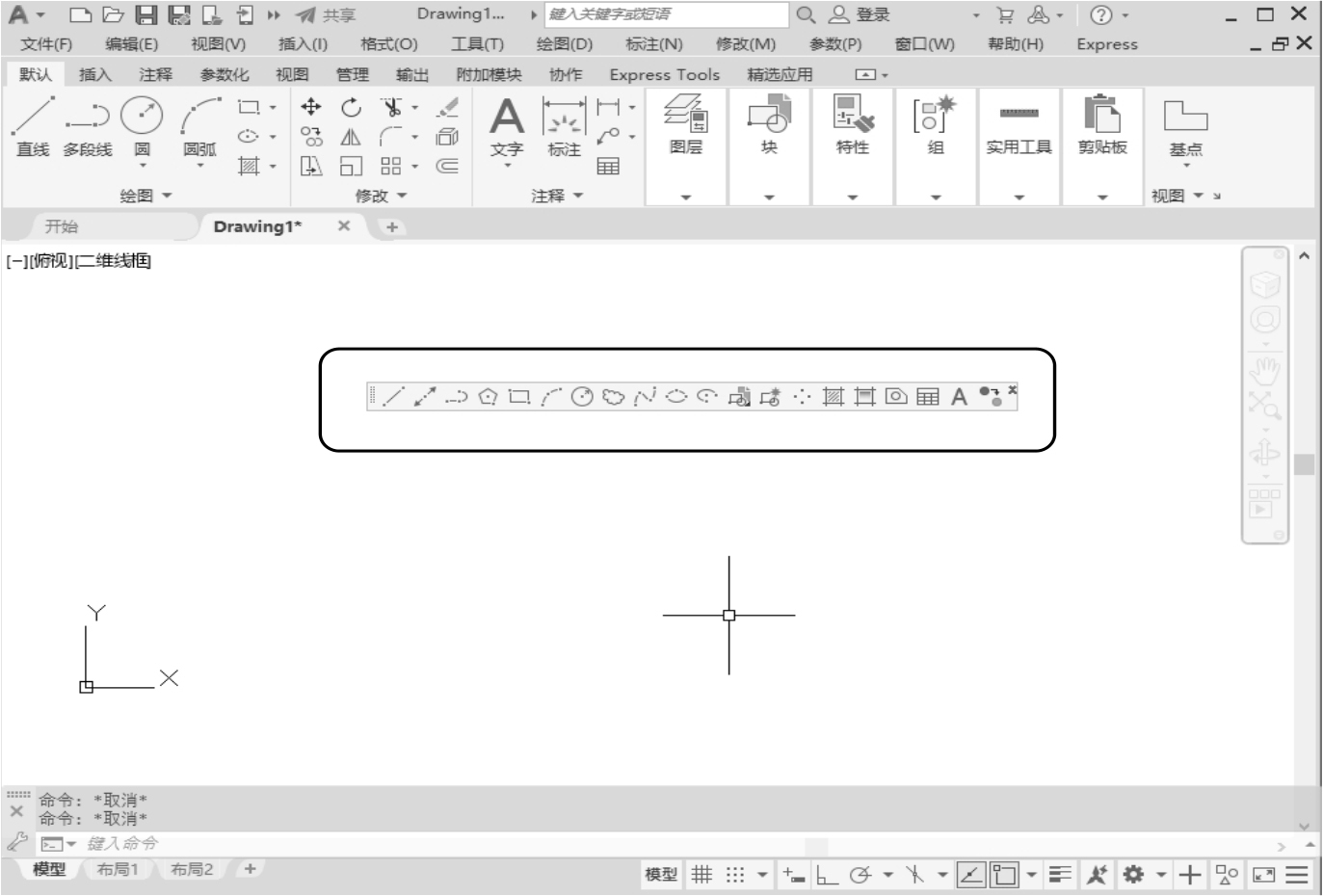 “AutoCAD”,系统会自动打开单独的工具栏标签,如图2-5所示。