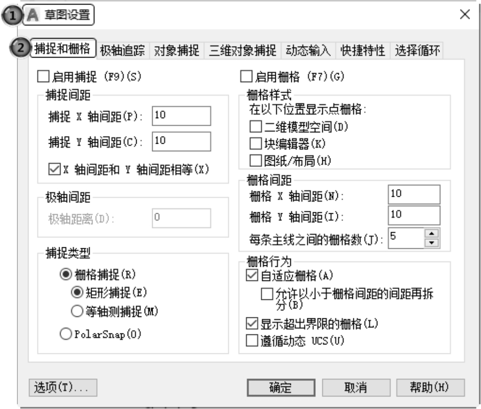 选择“捕捉和栅格”选项卡,如图2-46所示。