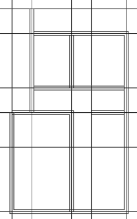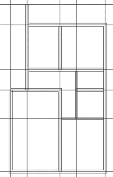 结果如图3-73所示,采用相同的方法根据辅助线网格绘制其余的240墙线,绘制结果如图3-74所示。