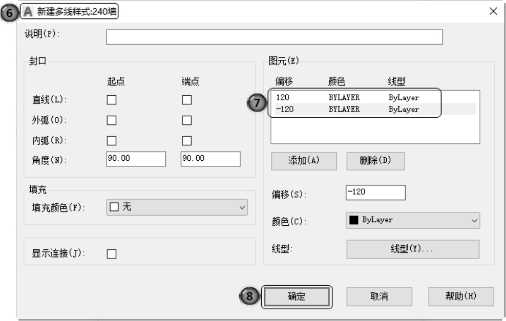 (2)定义240多线样式。选择菜单栏中的“格式”→“多线样式”命令,