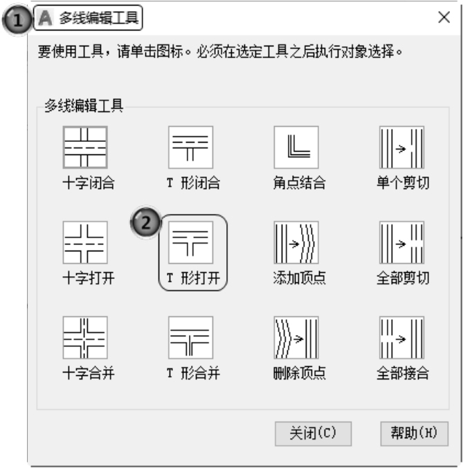 (7)编辑多线。选择菜单栏中的“修改”→“对象”→“多线”命令,