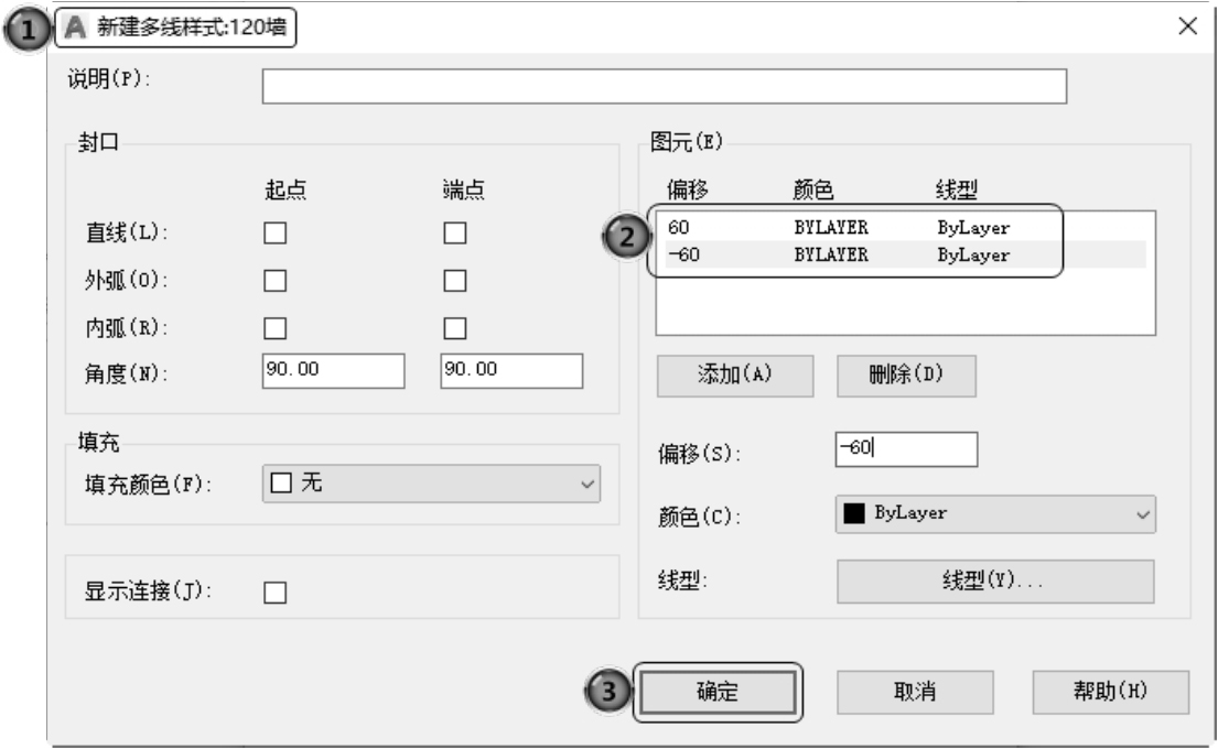 系统打开“新建多线样式”对话框,如图3-62所示。