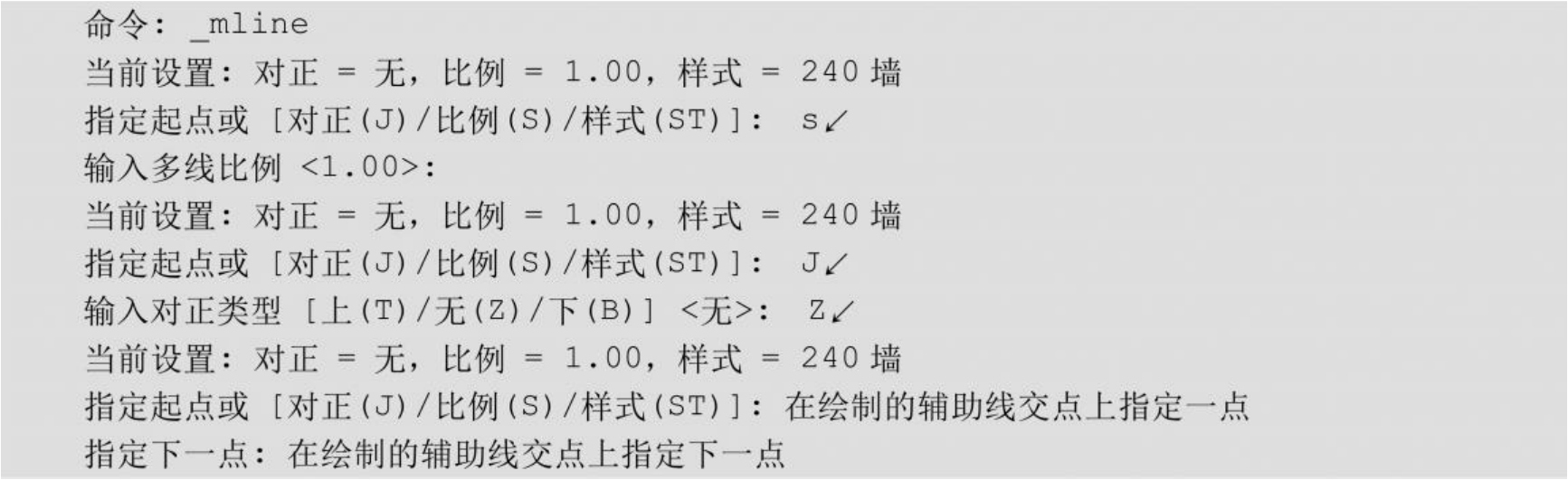(4)选择菜单栏中的“绘图”→“多线”命令,绘制240墙体,命令行提示与操作如下。