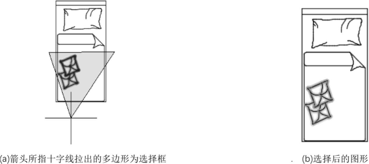 (8)圈围(WP):使用一个不规则的多边形来选择对象。根据提示,用户依次输入构成多边形所有顶点的坐标,直到最后按<Enter>键结束操作,系统将自动连接第一个顶点与最后一个顶点,形成封闭的多边形。凡是被多边形围住的对象均被选中(不包括边界),执行结果如图4-4所示。