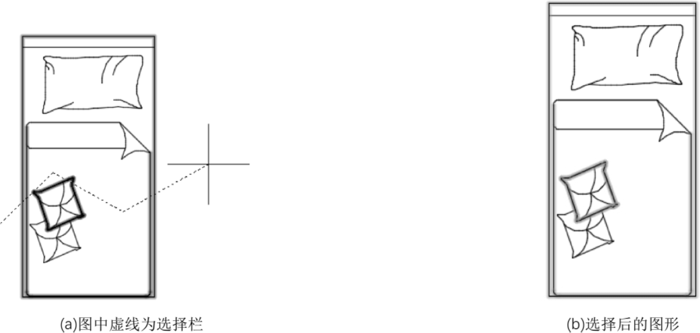 (7)栏选(F):用户临时绘制一些直线,这些直线不必构成封闭图形,凡是与这些直线相交的对象均被选中,执行结果如图4-3所示。
