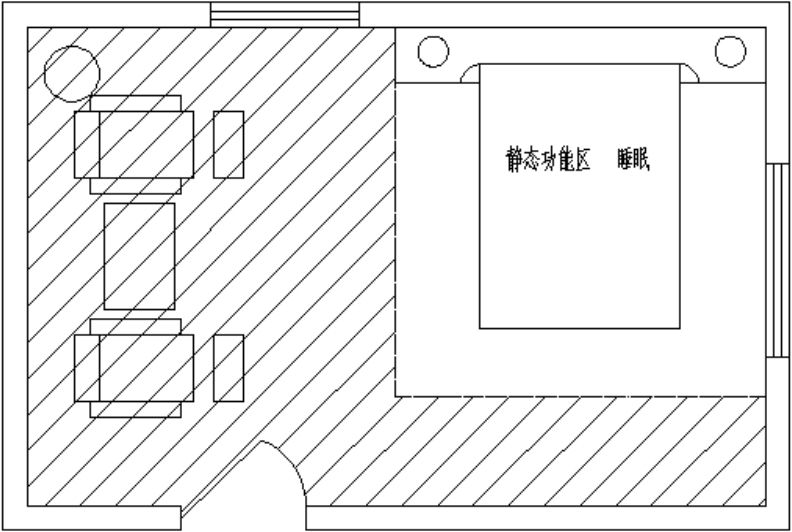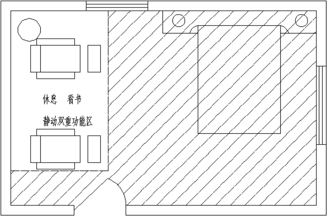 根据人们的具体活动行为,又有更加详细的划分。例如,静态功能区又可分为睡眠区、休息区,如图1-1所示;动态功能区可划分为运动区、大厅,如图1-2所示。动静双重功能区可分为会客区、车站候车室、生产车间等,如图1-3所示。