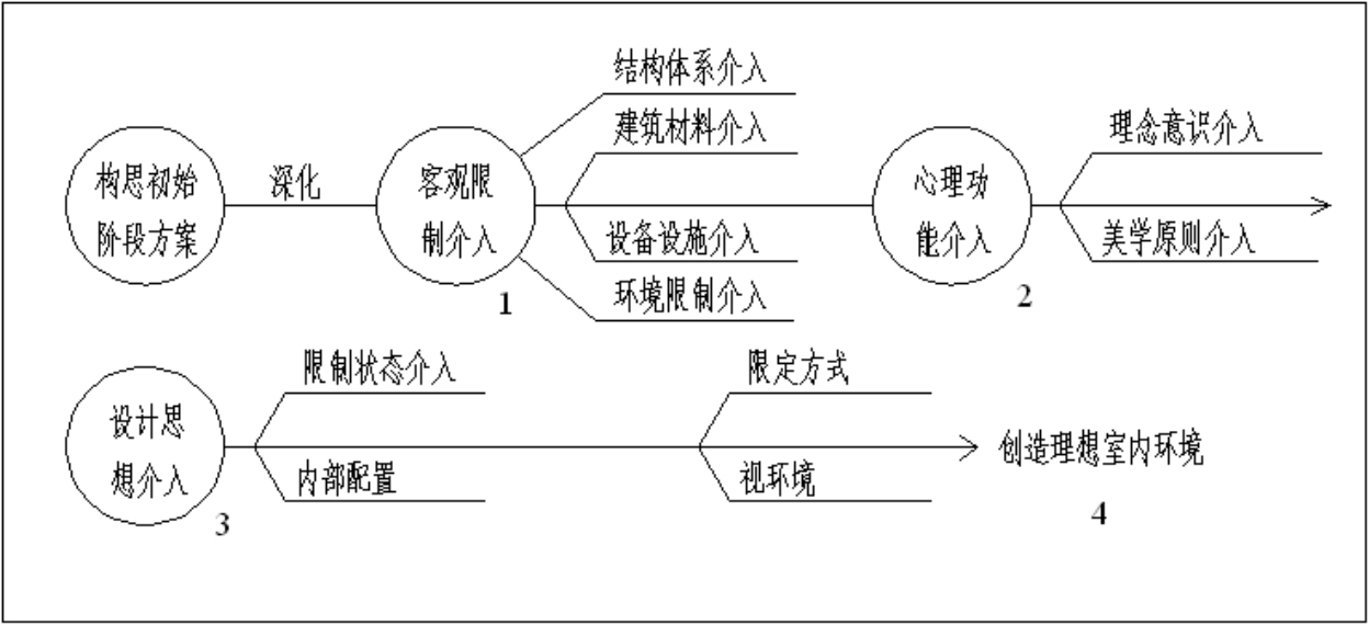 经过初始阶段的室内设计构成最初的构思方案后,在此基础上即可进行构思深化阶段的设计。深化阶段构思的内容和步骤如图1-7所示。