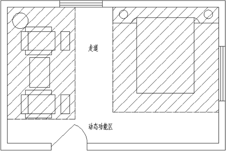 人们在室内空间活动时,按照一般的活动规律,可将活动空间分为三种功能区: