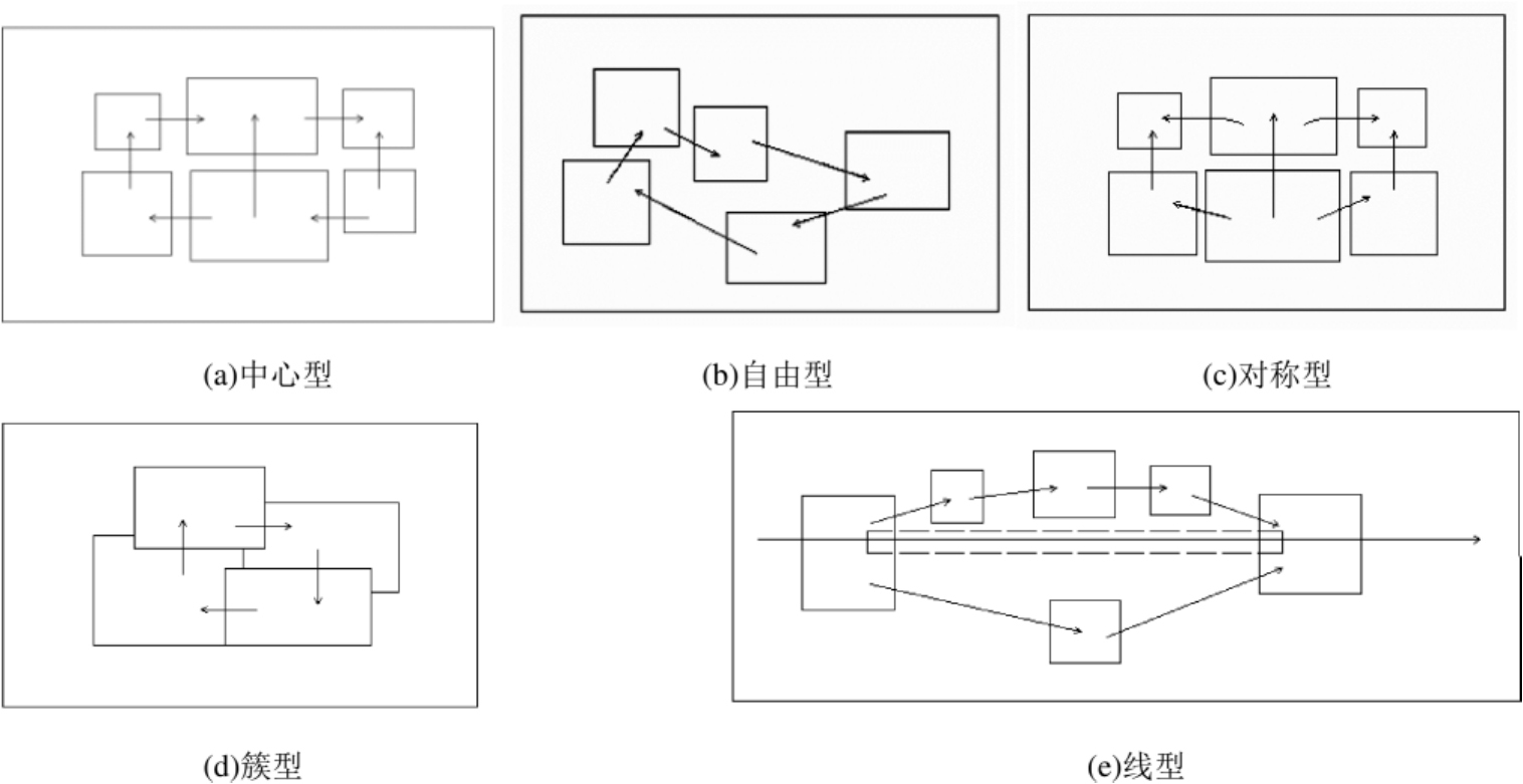 功能流线组合形式分为中心型、自由型、对称型、簇型和线型等,如图1-6所示。
