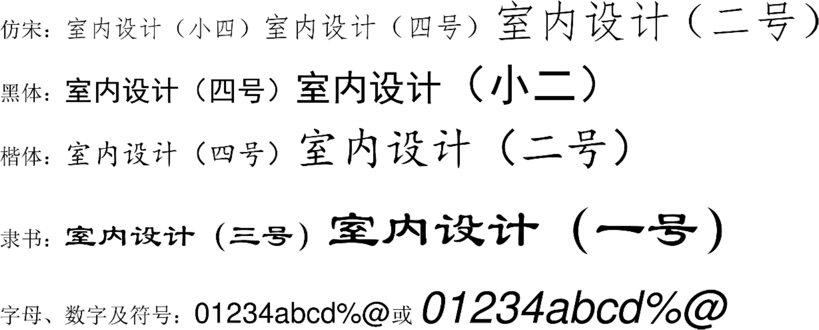 (2)字体:一般标注推荐采用仿宋字,标题可用楷体、隶书、黑体字等。例如: