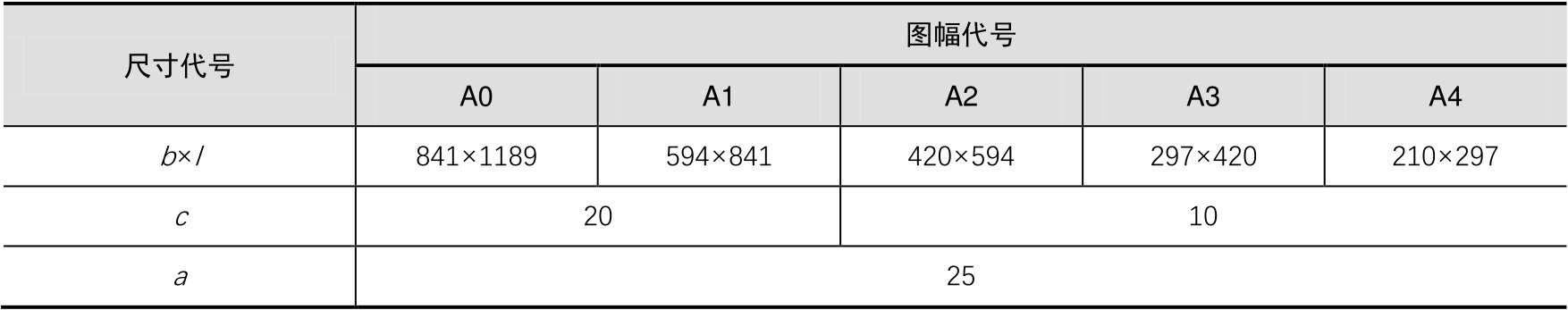 表1-1 图幅标准(单位:mm)
