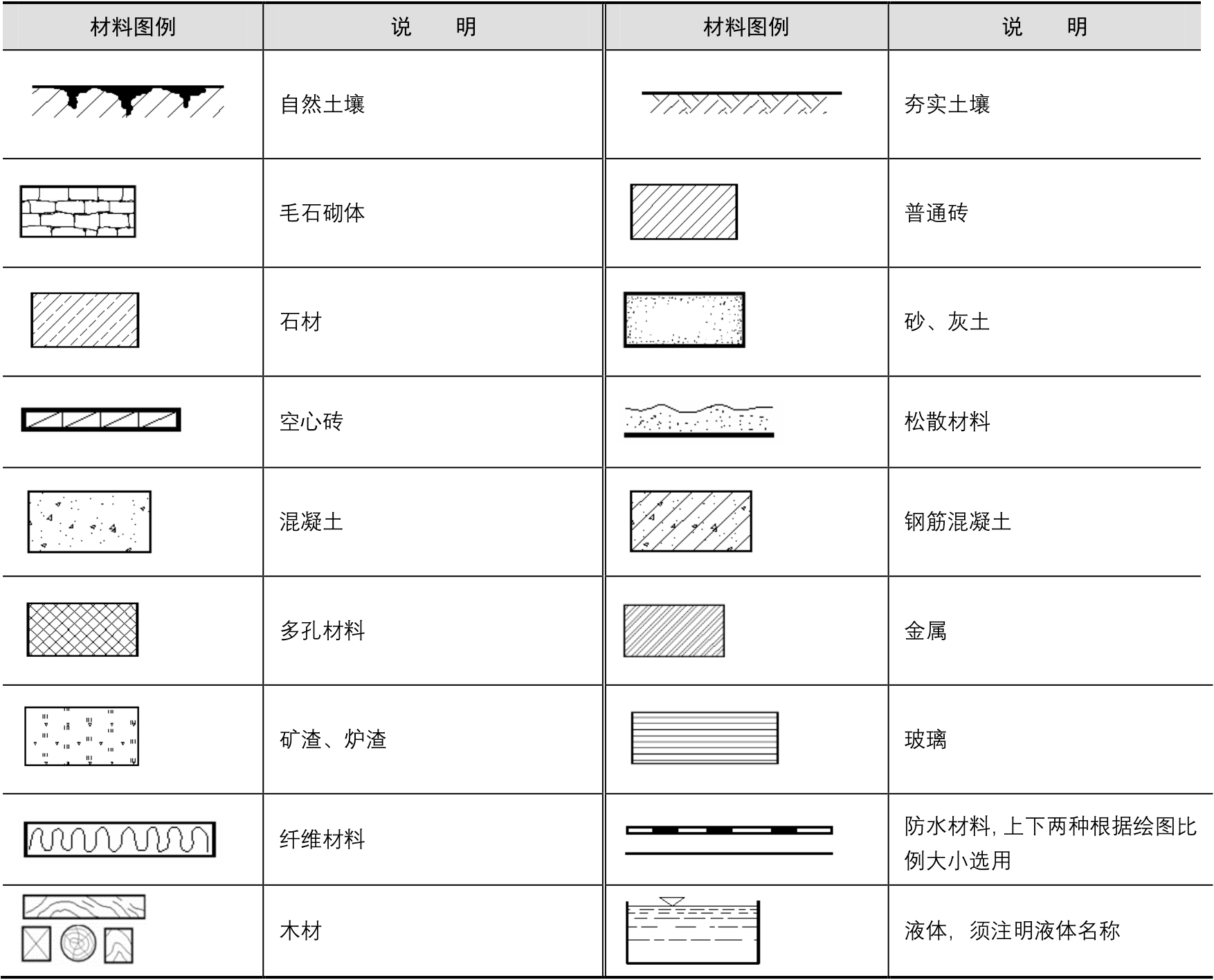 表1-4 常用材料图例
