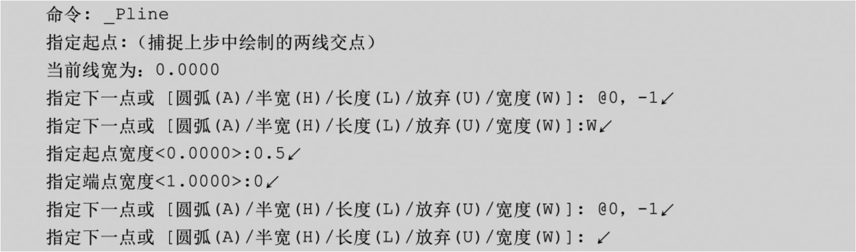 ,按命令行提示绘制多段线,即可形成单极拉线开关,如图3-39(b)所示。命令行中的提示与操作如下: