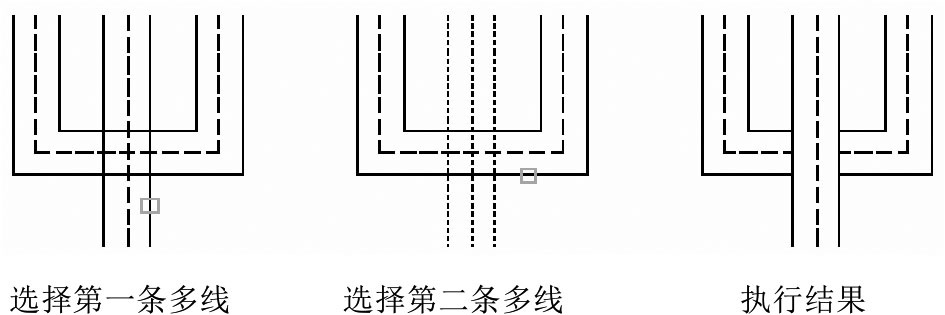 下面以“十字打开”为例,介绍多线编辑的方法,把选择的两条多线交叉打开。命令行提示与操作如下。
