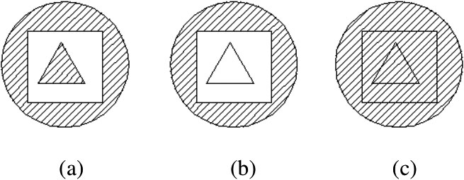 (1)普通方式。如图3-53(a)所示,该方式从边界开始,从每条填充线或每个填充符号的两端向里填充,遇到内部对象与之相交时,填充线或符号断开,直到遇到下一次相交时再继续填充。采用这种填充方式时,要避免剖面线或符号与内部对象的相交次数为奇数,该方式为系统内部的缺省方式。