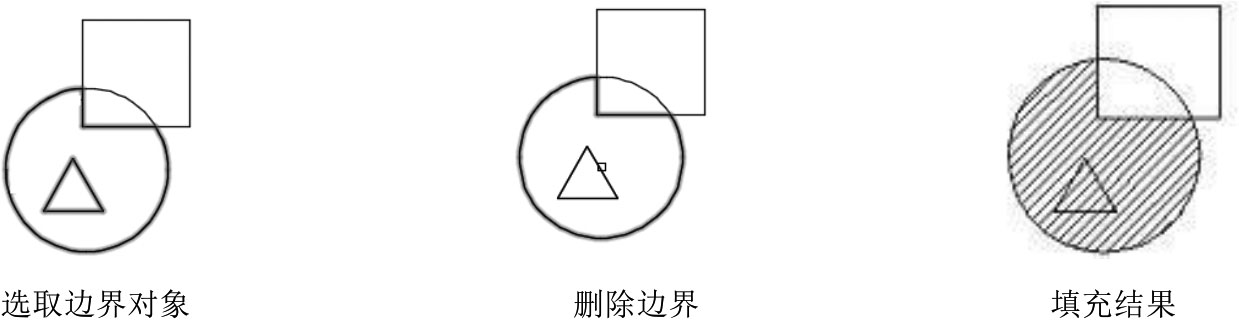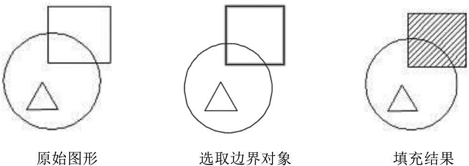 ②选择边界对象:指定基于选定对象的图案填充边界。使用该选项时,不会自动检测内部对象,必须选择选定边界内的对象,以按照当前孤岛检测样式填充这些对象(如图3-56 所示)。