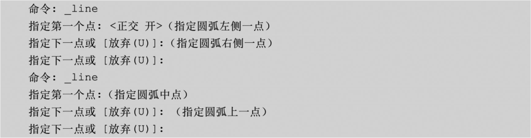 ,在圆弧上端点绘制相互垂直的两条线段,命令行提示与操作如下。