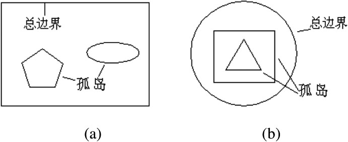 ●普通孤岛检测:从外部边界向内填充。如果遇到内部孤岛,填充将关闭,直到遇到孤岛中的另一个孤岛。