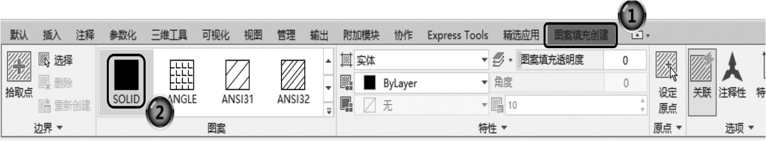 (3)单击“默认”选项卡“绘图”面板中的“图案填充”按钮