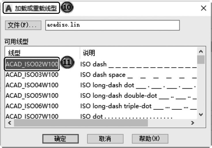 选择ACAD_ISO02W100线型,如图3-69所示。确认退出。
