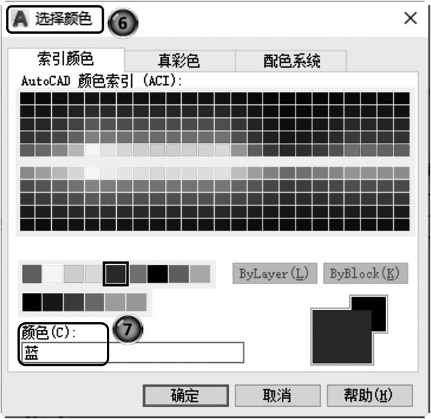 选择蓝色为该层颜色,如图3-67所示。确认返回“图层特性管理器”对话框。