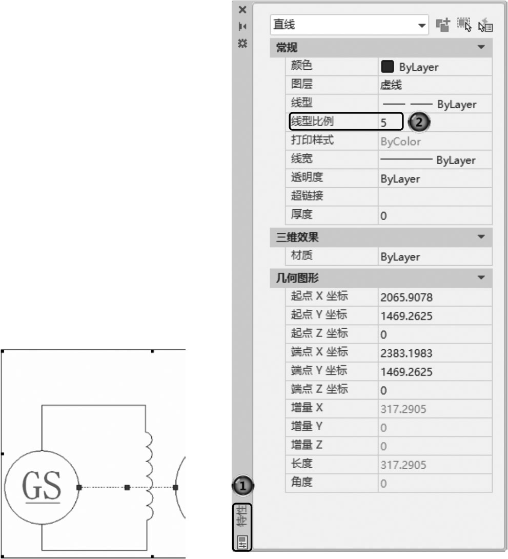 将其中的“线形比例”参数设置成比较大的数值,如图3-89所示。这样就可以在正常图形显示状态下清晰地看见虚线的细线段和间隔。