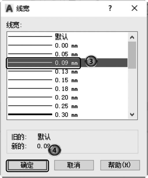 打开“线宽”对话框,选择0.09mm线宽,如图3-66所示。