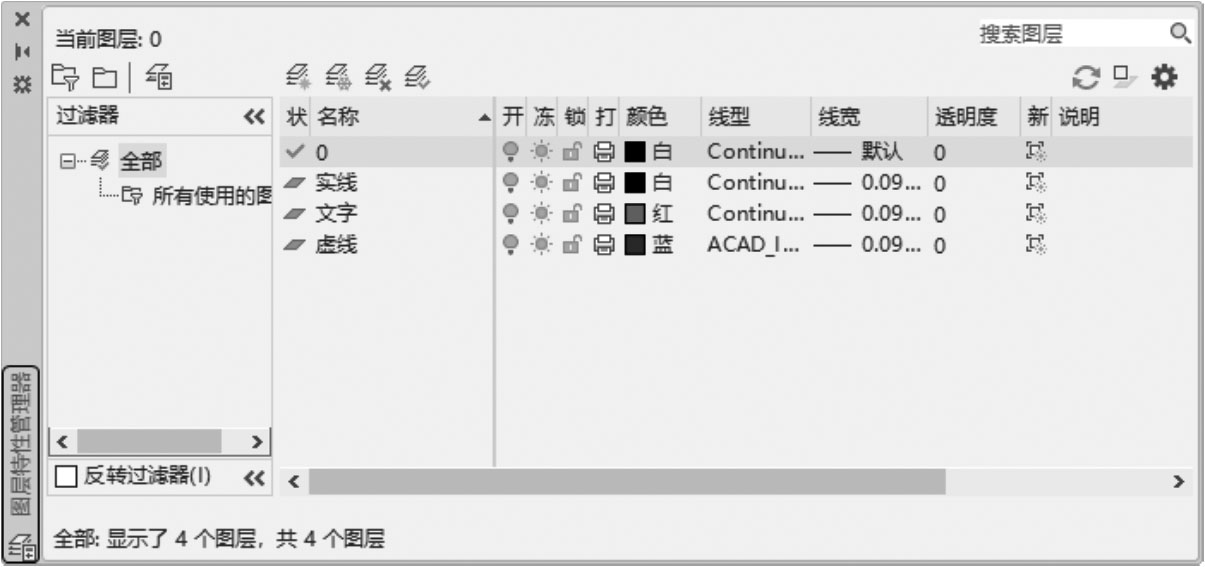 (9)选中“实线”层,将其设置为当前图层,然后确认关闭“图层特性管理器”对话框。