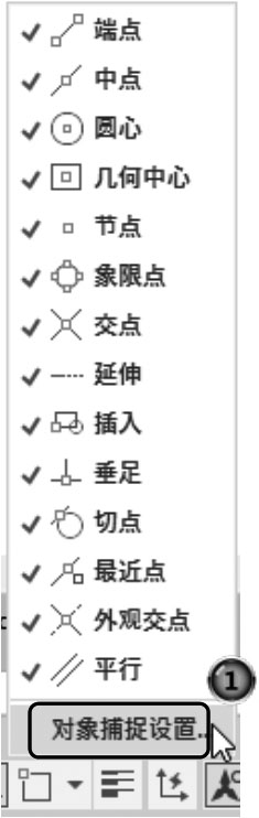 选择“对象捕捉设置”命令,如图3-72所示,系统