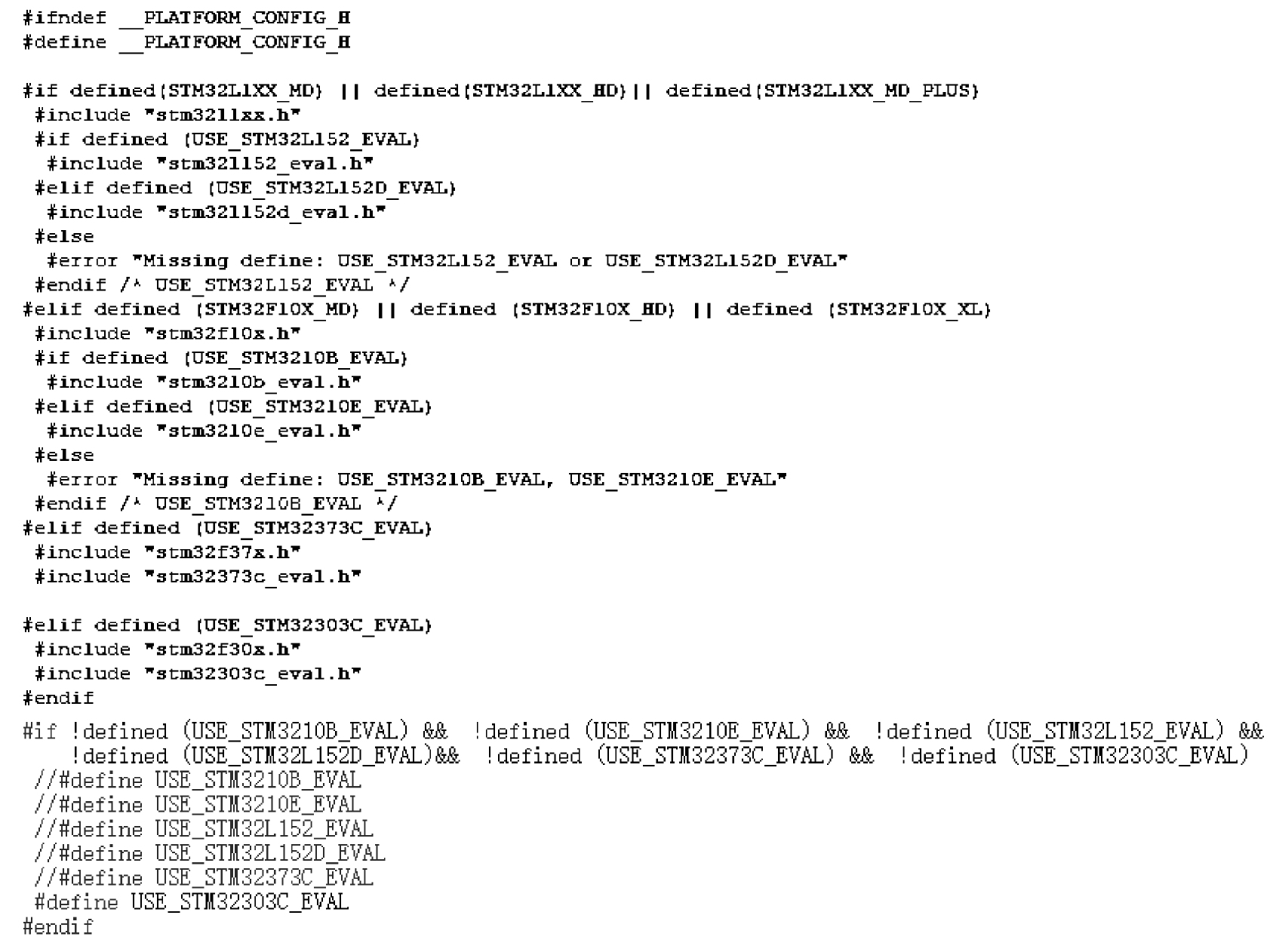 为了方便进行不同评估板的适配层选择,每个项目都会有一个平台适配头文件platform_config.h,如清单8.1所示。